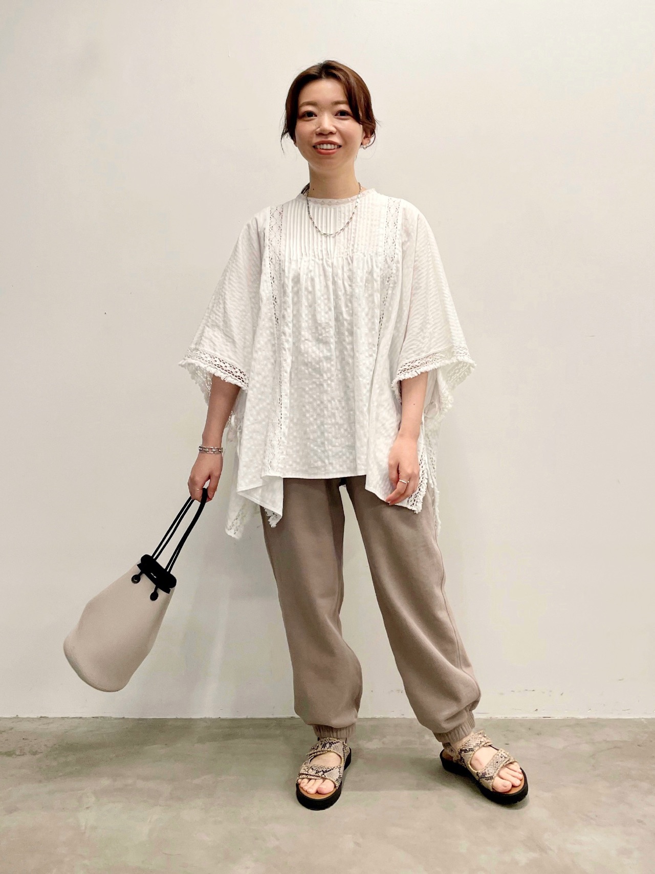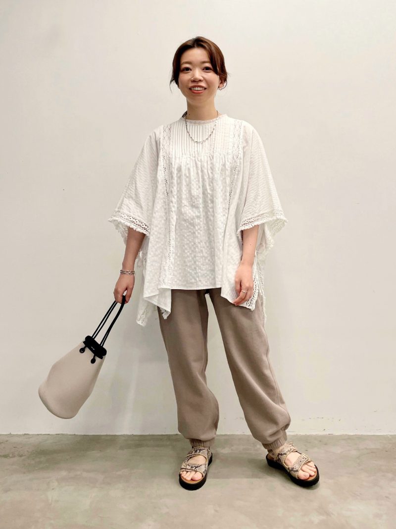 ヒップから裾までゆったりとした作りで雰囲気のあるカジュアルなシルエットですが、