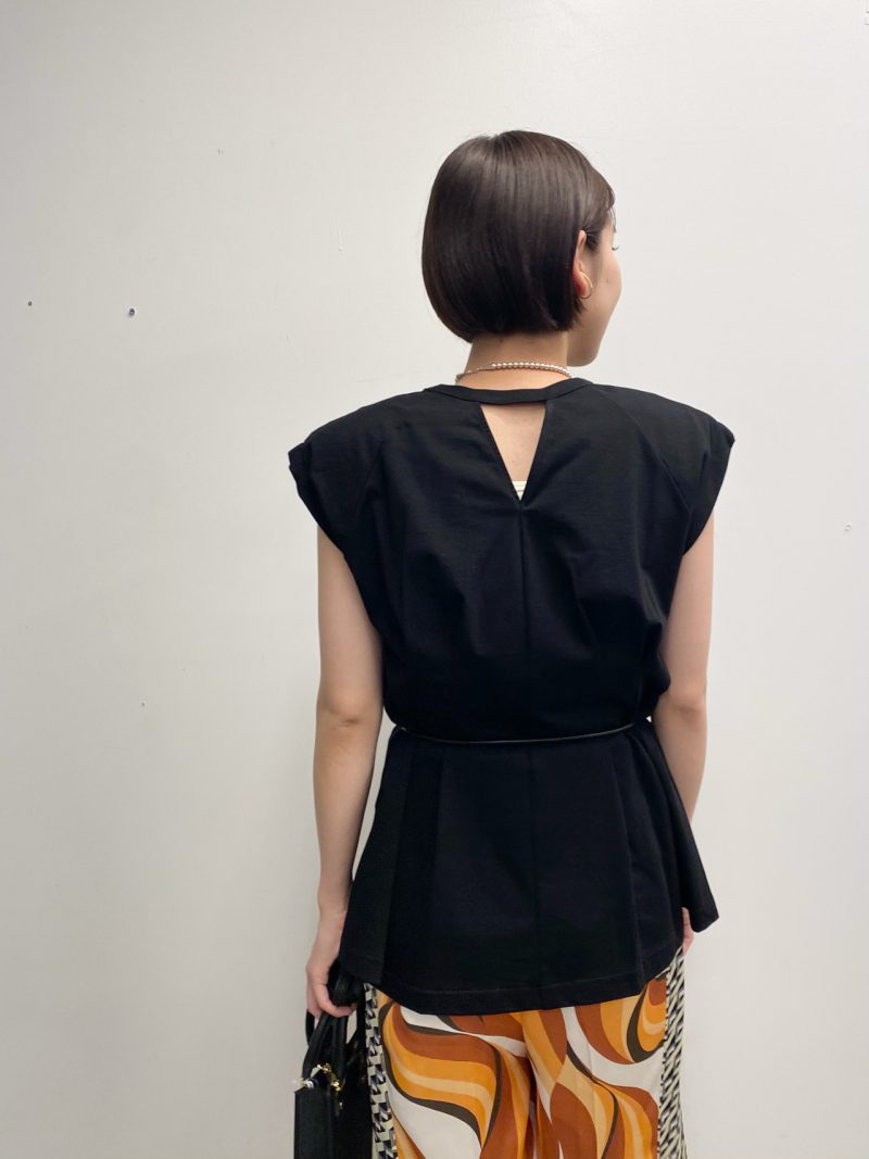 トレンドのパワーショルダーデザインを落とし込んだモードなTシャツ。