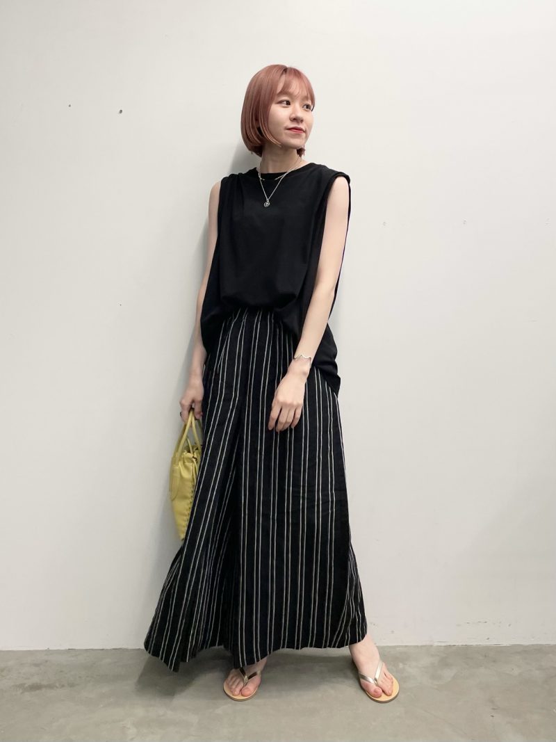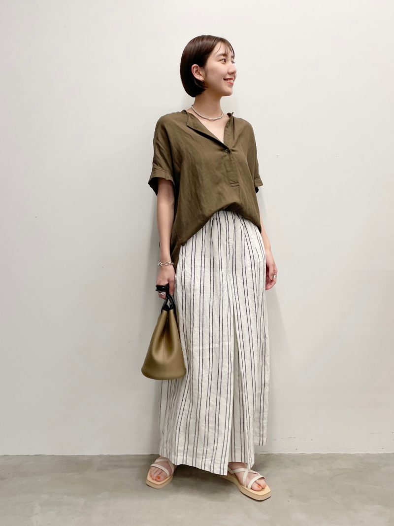 ワイドシルエットを足首の丈感で履くことで、軽さが出て全体的にすっきりと見えます。