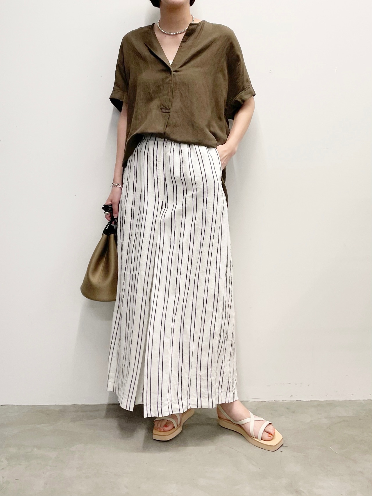 無地はもちろんですが、ストライプ柄もコーデが華やかになるので使いやすくておすすめです。