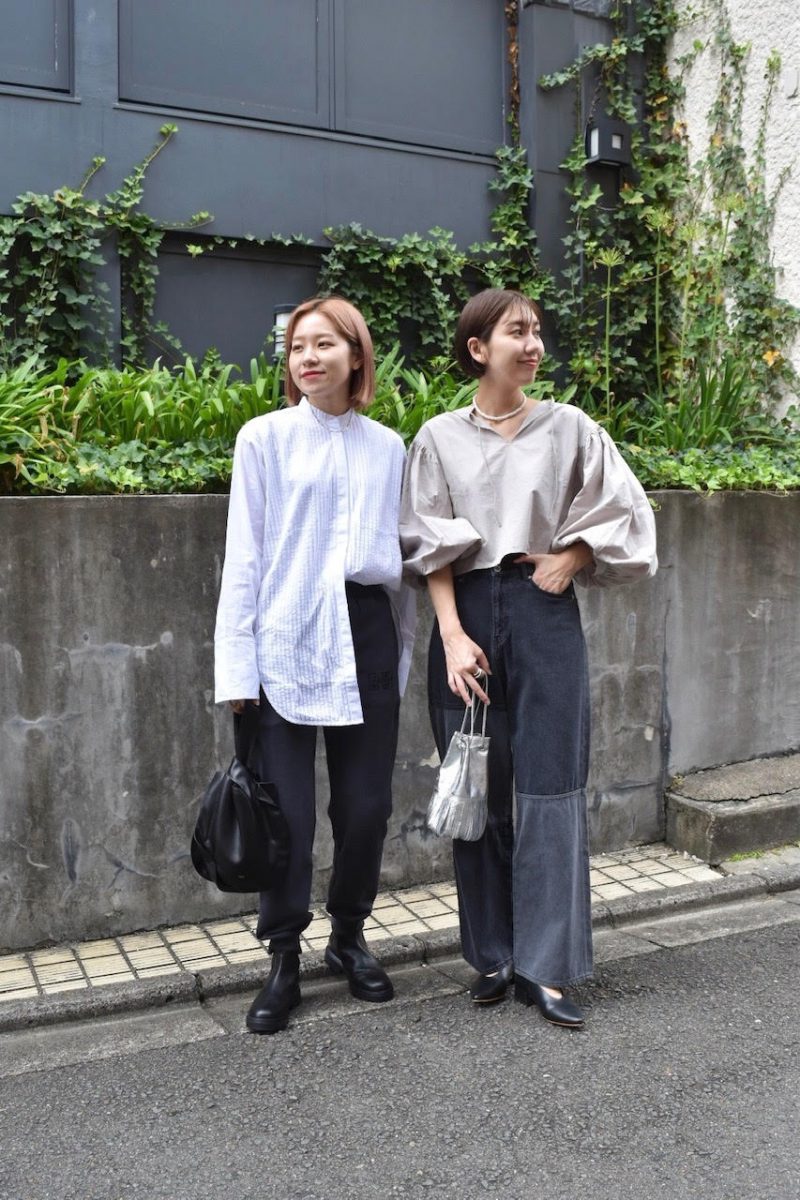 すっきりとしたシルエットに片方トップスインすると今年らしいコーディネートになります。