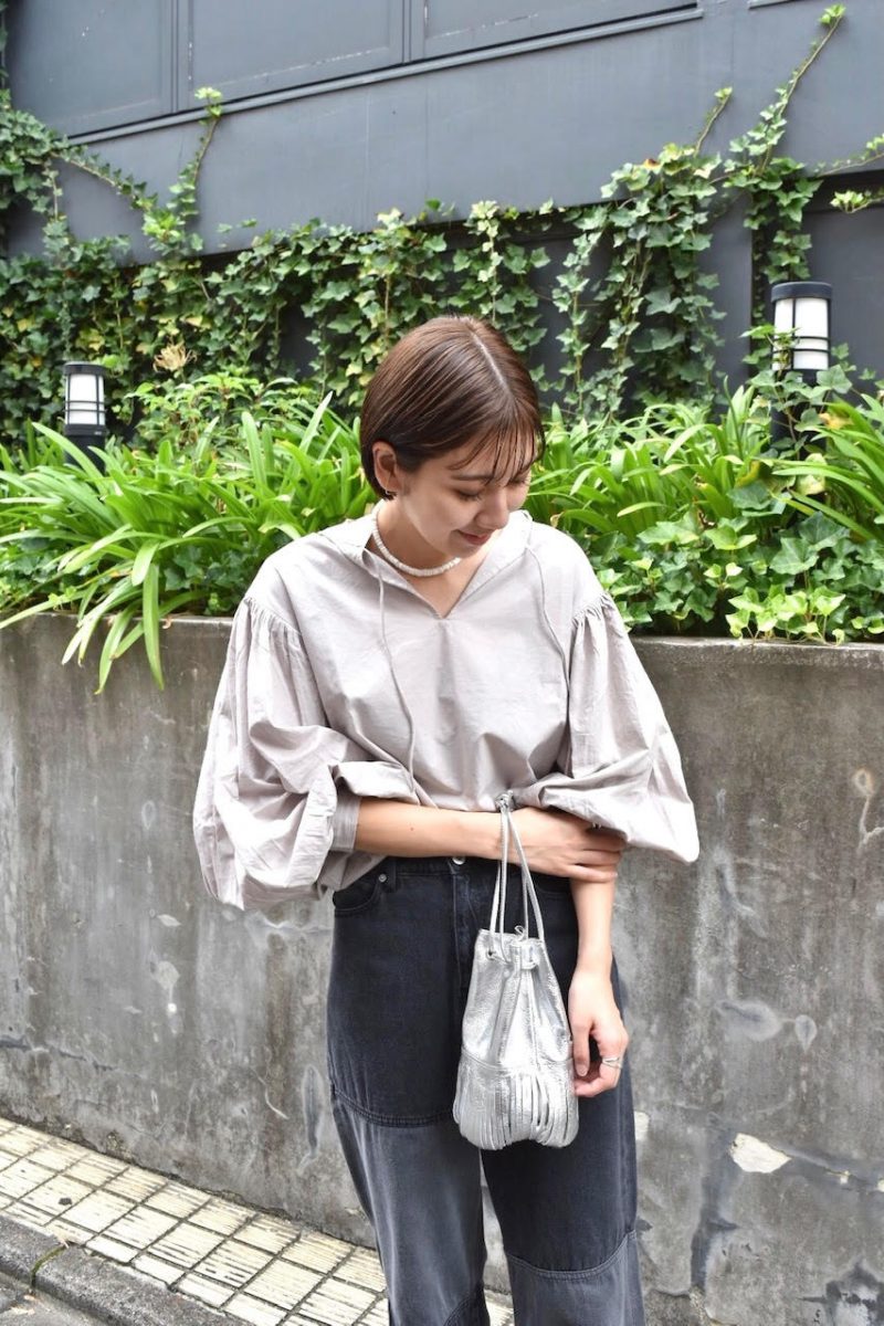 ショート丈のブラウスでボリュームのあるパフスリーブ、一枚で様になるブラウスです。
