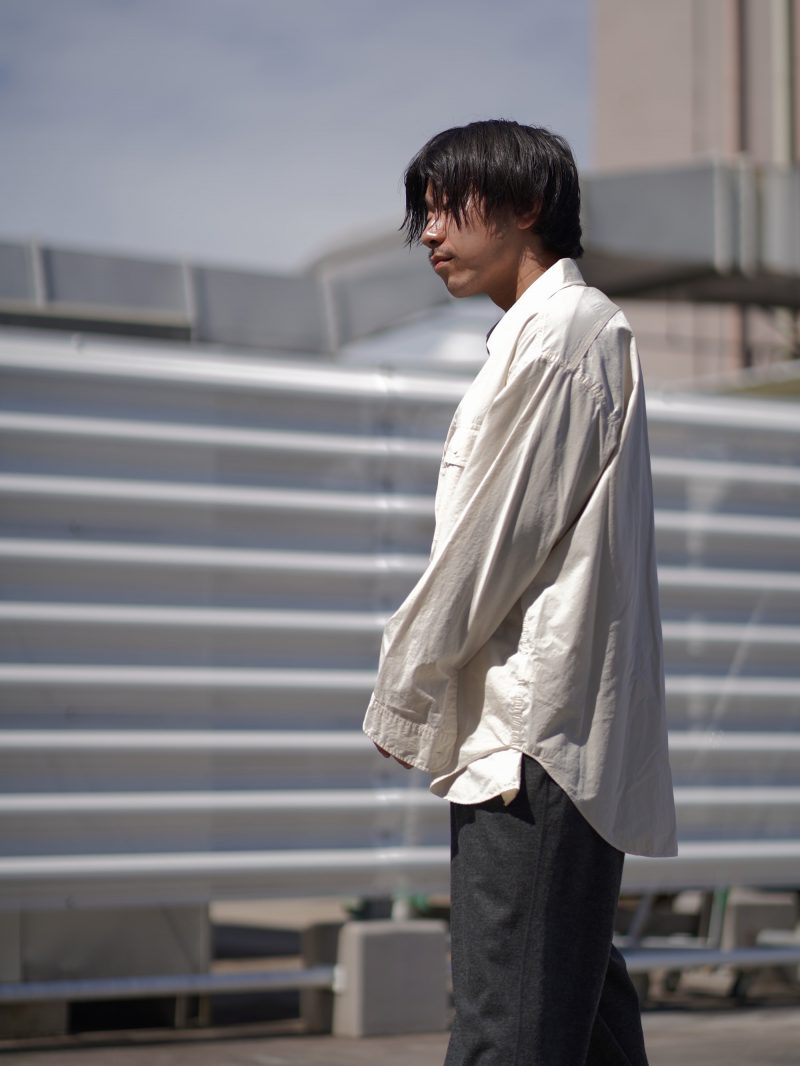 しゃりっとした風合いのあるしわ感が魅力のワークシャツ。