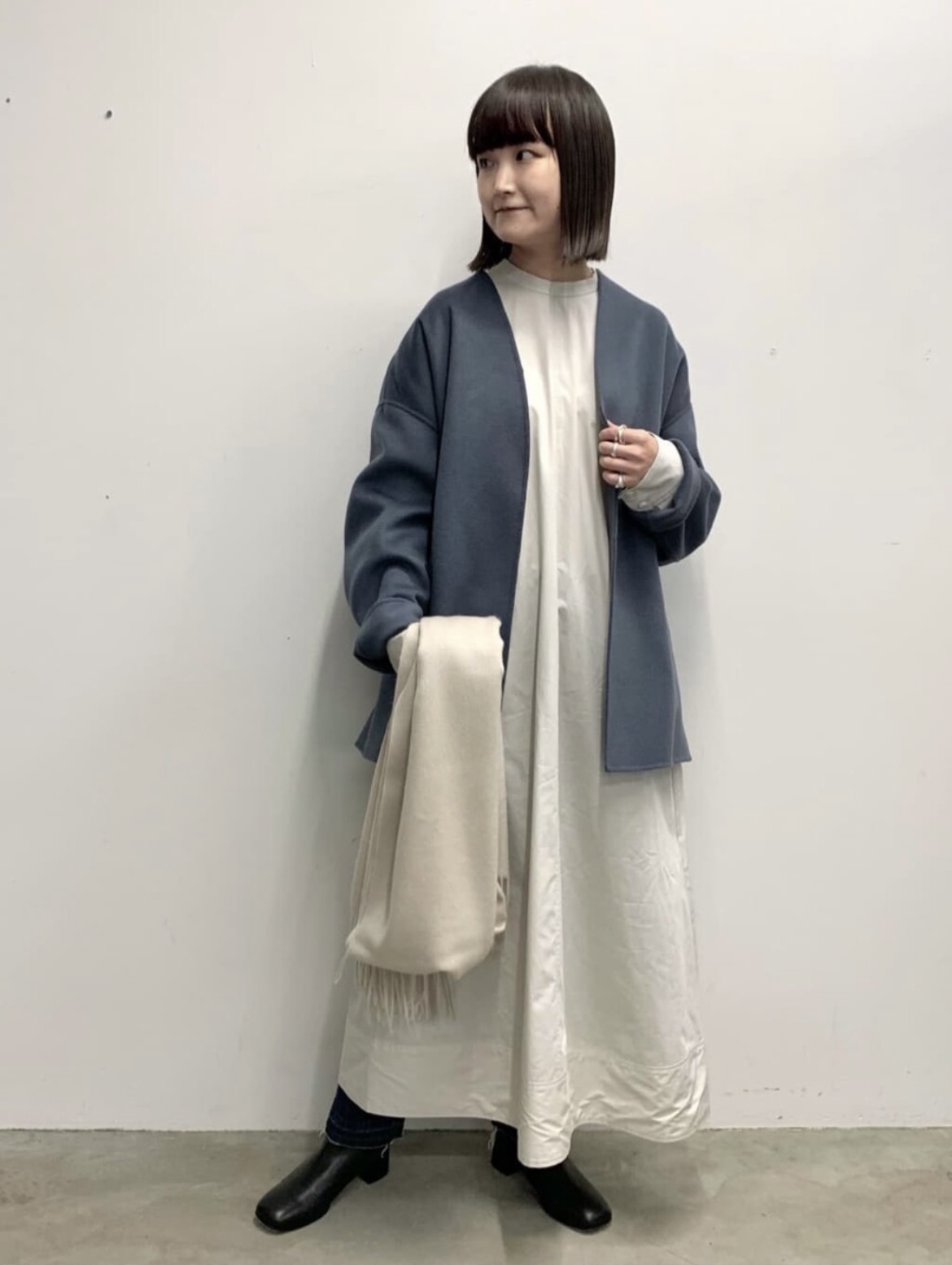 シンプルなのでストールやネックウォーマー、アームウォーマーなど冬小物との相性も抜群です。