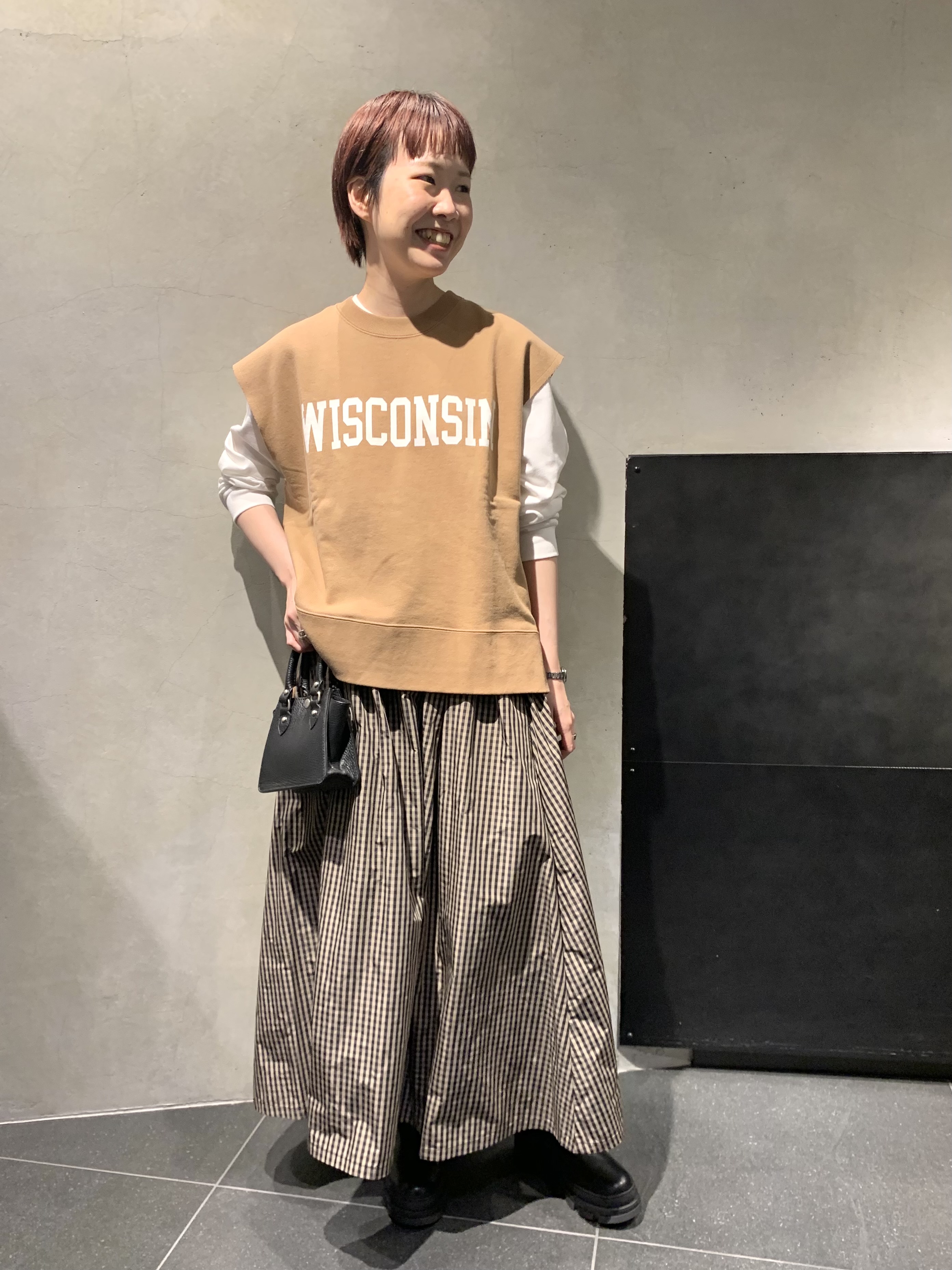 トレンドのチェック柄のボトムとも相性バッチリです。