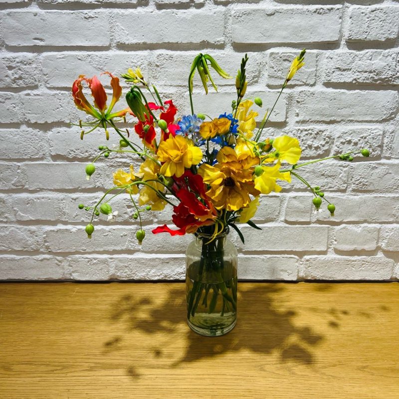 店頭では、お花(ラナンキュラス・グロリオサ・スイトピー・デルフィニウム・イキシア・アンスリウム)を