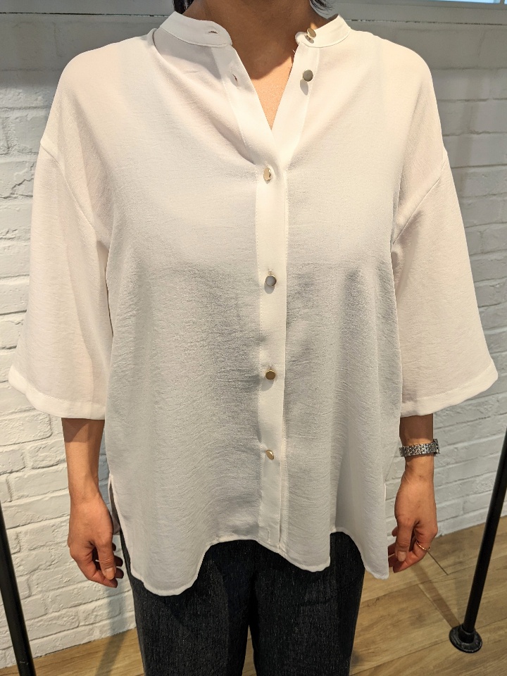 1.ストレートに釦を留めて着るベーシックなスタイル(写真1枚目)