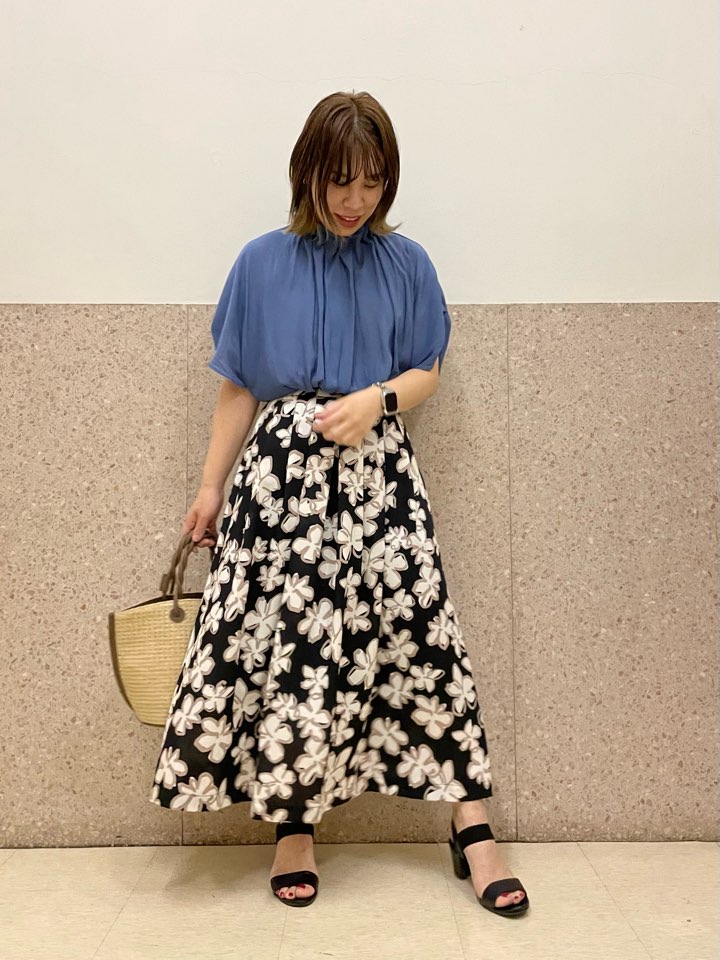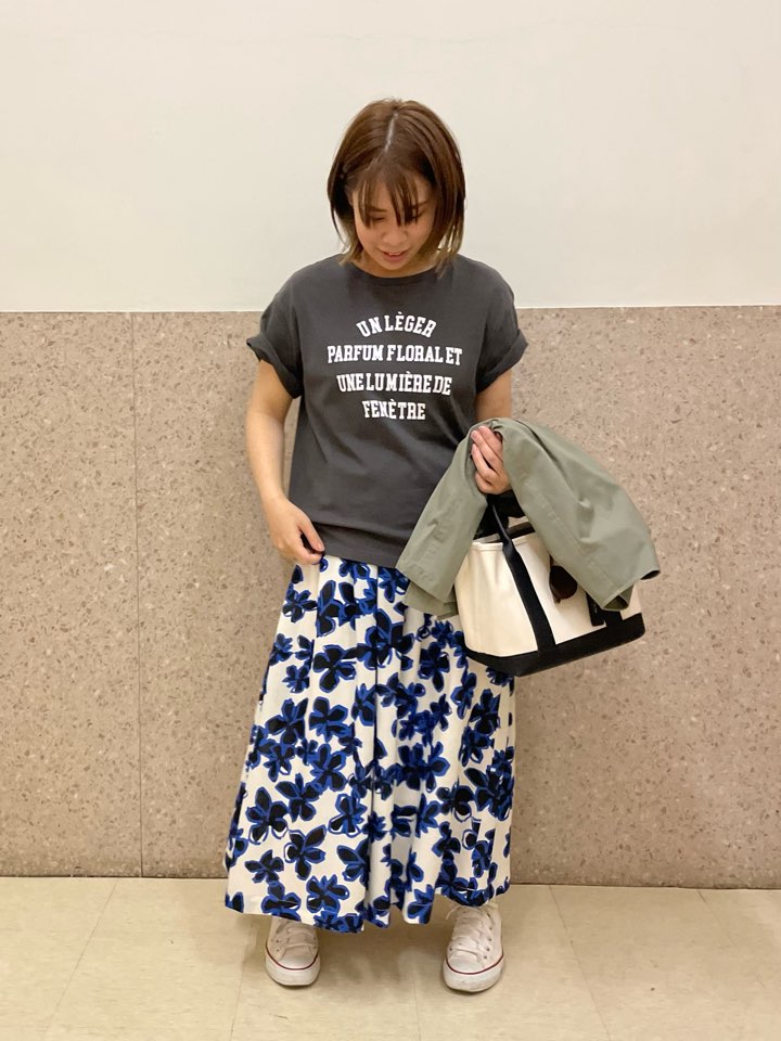 夏には定番のTシャツのスタイリングですが、スカートを合わせて新鮮な雰囲気にしてみました♪