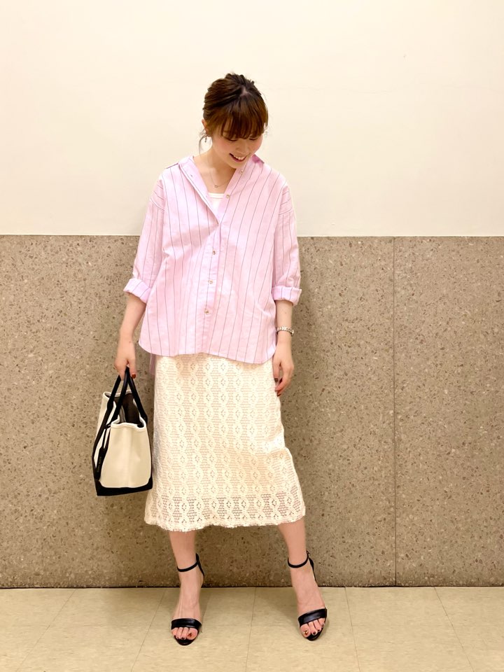 カジュアルすぎないリネンシャツは今年らしいピンクのストライプを選びました!デニム合わせもシンプルで可愛い☆