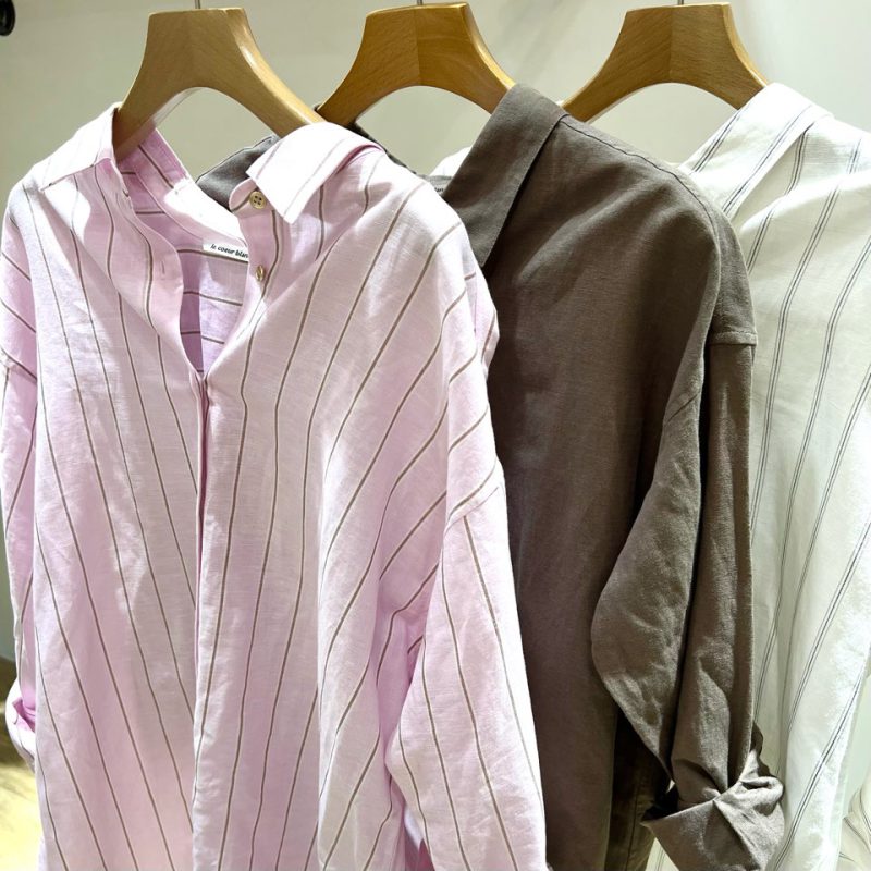 ピンクストライプ、カーキ、オフストライプの3色を再入荷☆