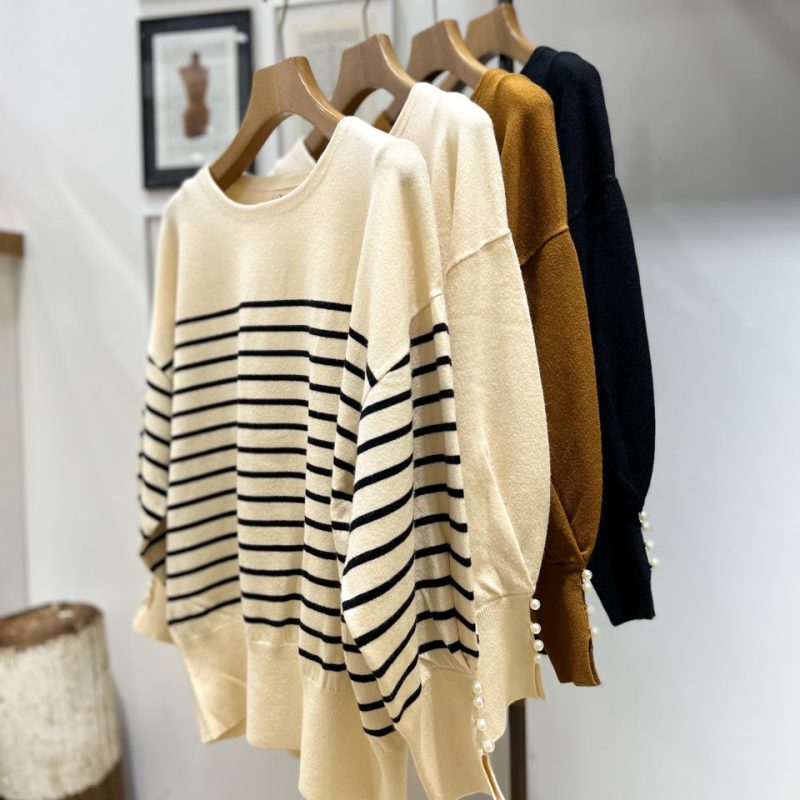 No.3028020700 袖口パール釦付きドルマンシルエットニット ¥9,790(税込)