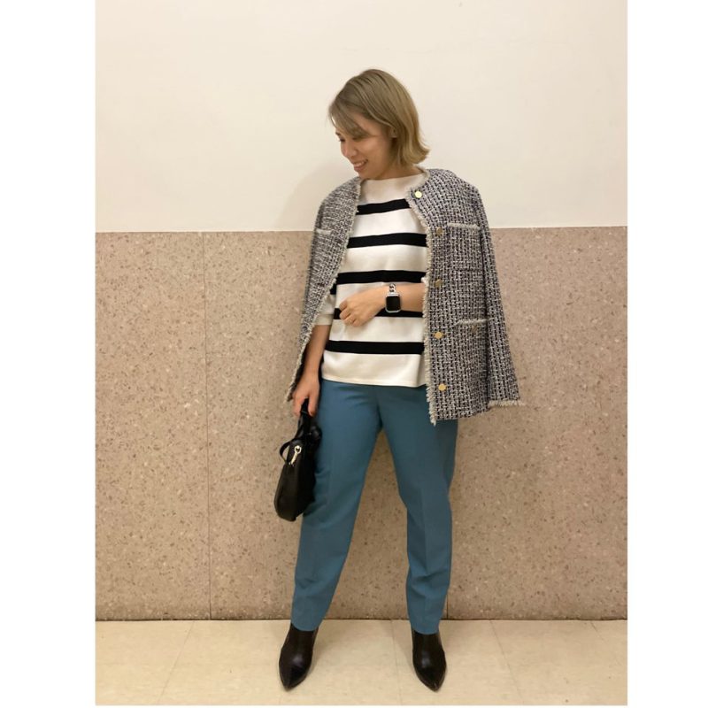 細かいツイード柄ですのでピッチの広いボーダーと合わせて