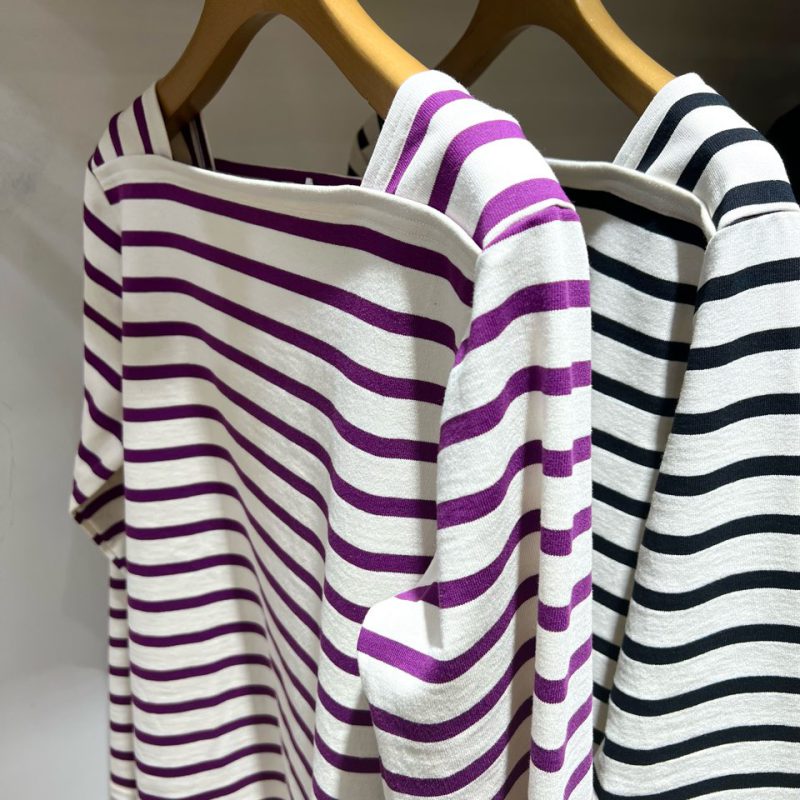 珍しいパープルのボーダーTシャツ☆いつものスタイリングにカラーを取り入れてみませんか?