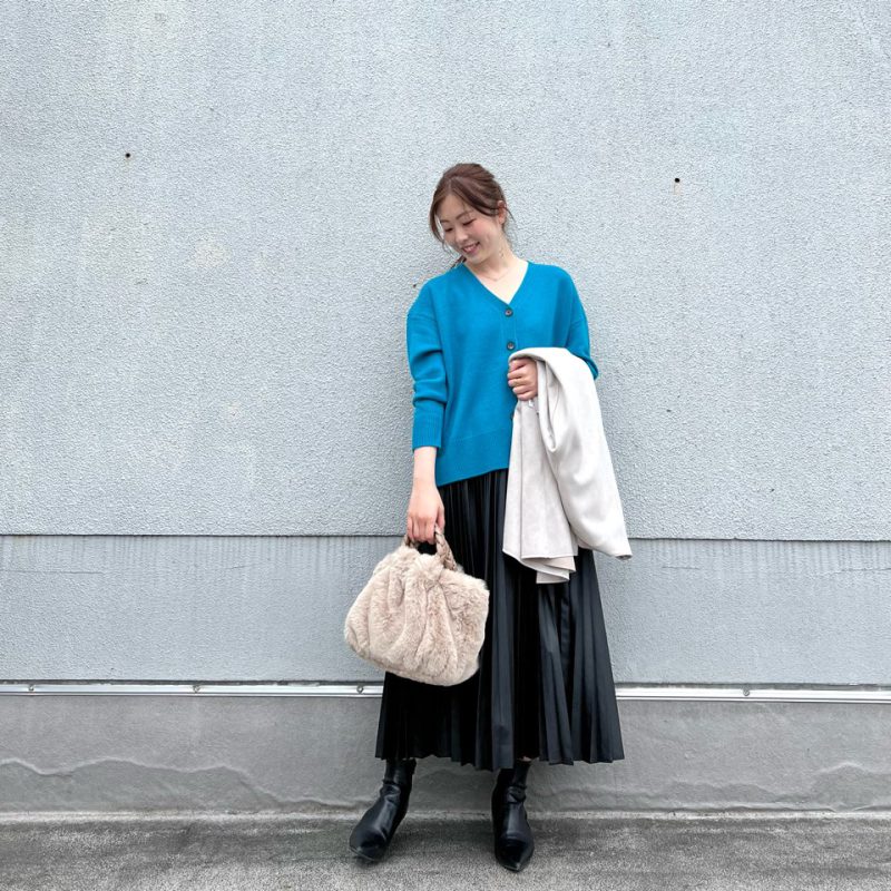 カーディガンは羽織にはもちろん、Vネックのトップスとしても着まわせます♪