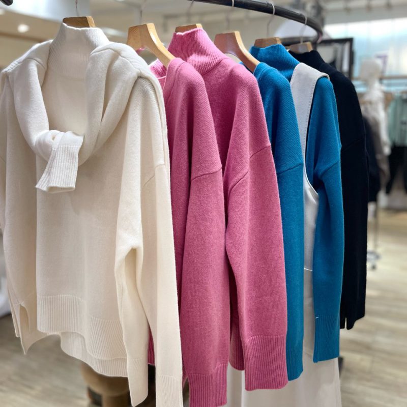 ウォッシャブルウールのハイネックニットとカーディガンが入荷しました!