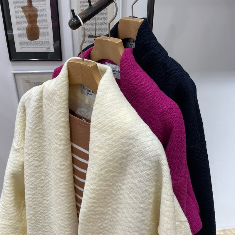 凹凸のある素材感とラフなシルエットでシンプルながらも存在感のあるガウンです♪