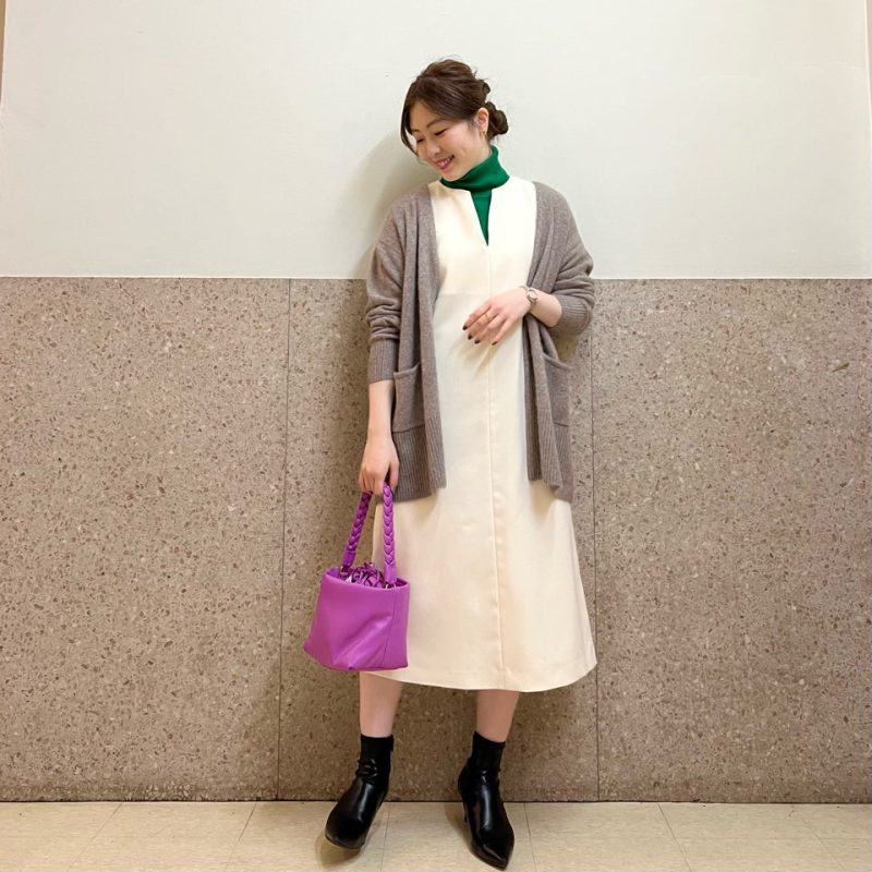 カラーはモカを着用しており、落ち着いたトーンでカラーコーデもまとまります◎