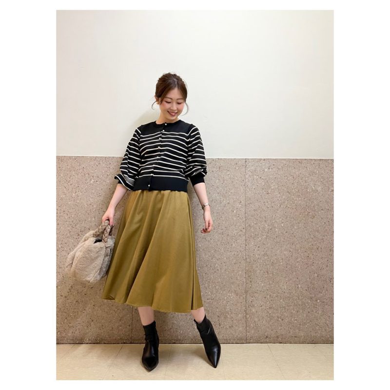 全体的にコンパクトなサイズ感ですのでスカートをあわせて上品なスタイリングにしました!