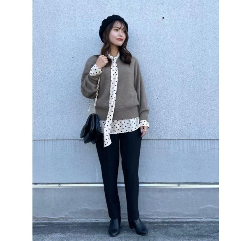 ドット柄のブラウスで重ね着したレイヤードスタイルが新鮮な雰囲気になります☆
