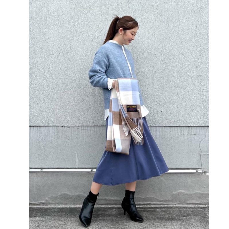 ちなみにこちらのトップスは先日ご紹介したラメニットのブルーを着用しています♪