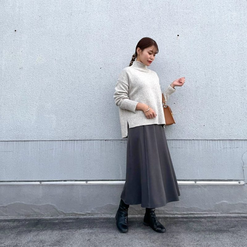 ざっくりめのハイネックニットでカジュアルめな着こなしです♪
