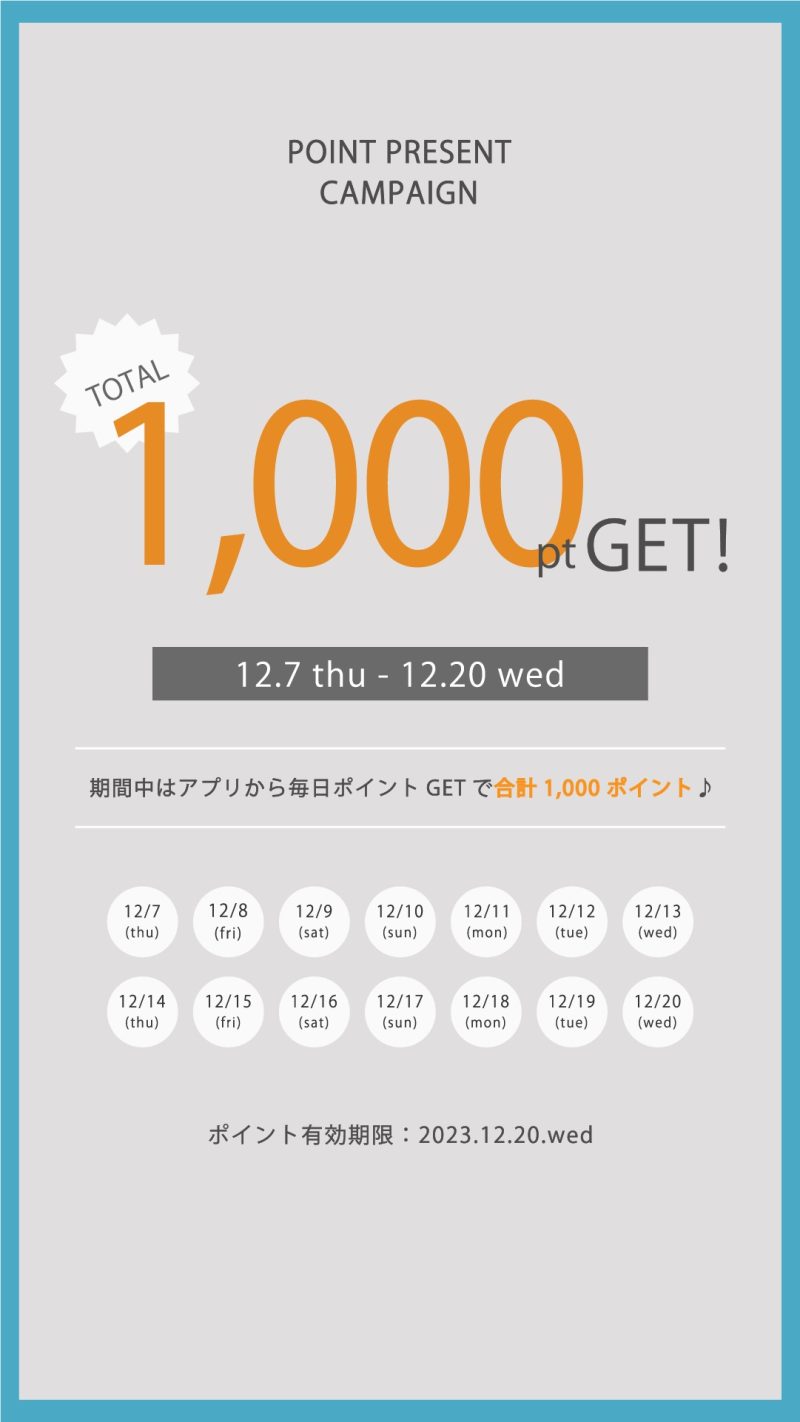 2週間毎日ポイントを貯めていただくと合計で 1000ptゲットとなります!