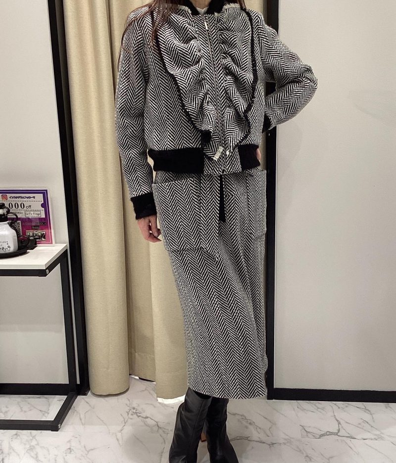 ヘリンボーンフリルウールジップJK