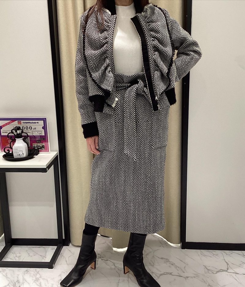 ヘリンボーン柄が落ち着いたシックな印象とあたたかみを演出してくれる