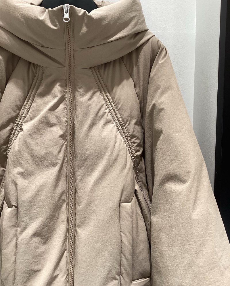 裾のドロースト紐を絞ることでコクーンシルエットがより強調されるので雰囲気を変えて楽しむことができます。