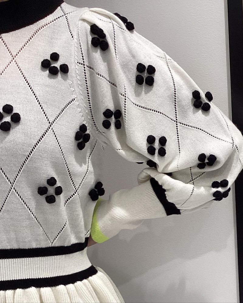クローバーの立体的なモチーフが可愛らしく、シンプルなニットに上品さを添えてくるデザインです♪