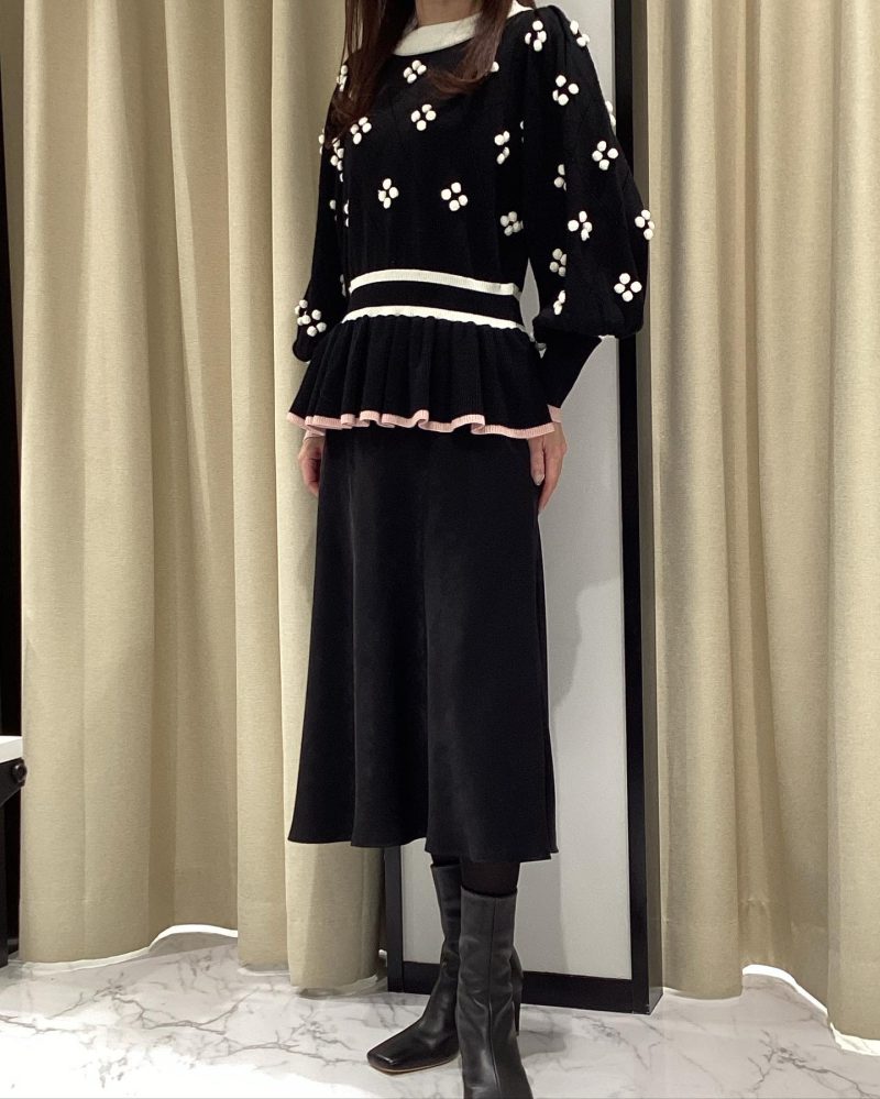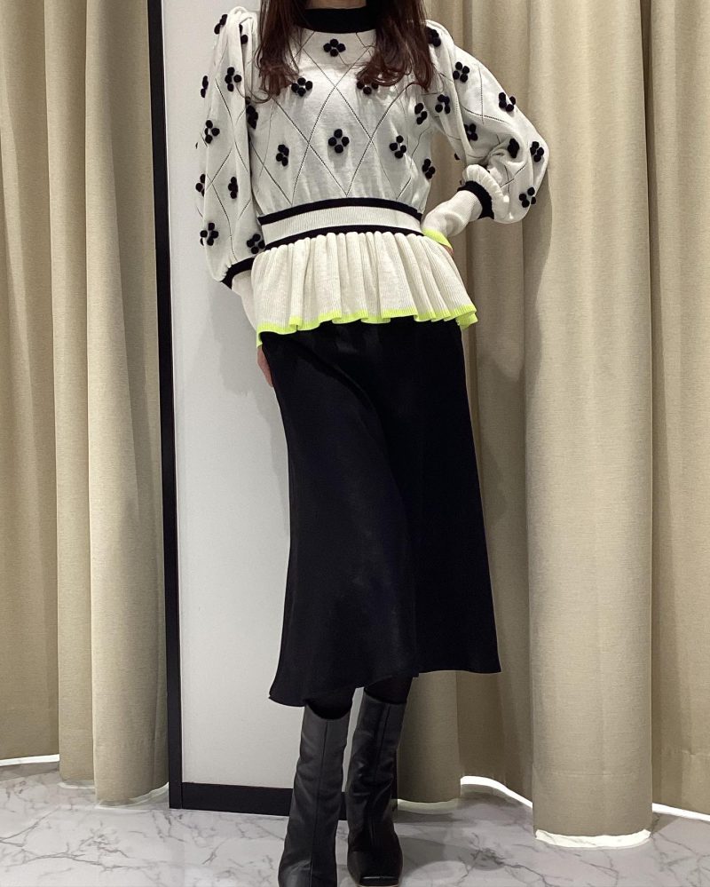 裾のペプラムシルエットもフェミニンさもスタイルもUPしてくれます。