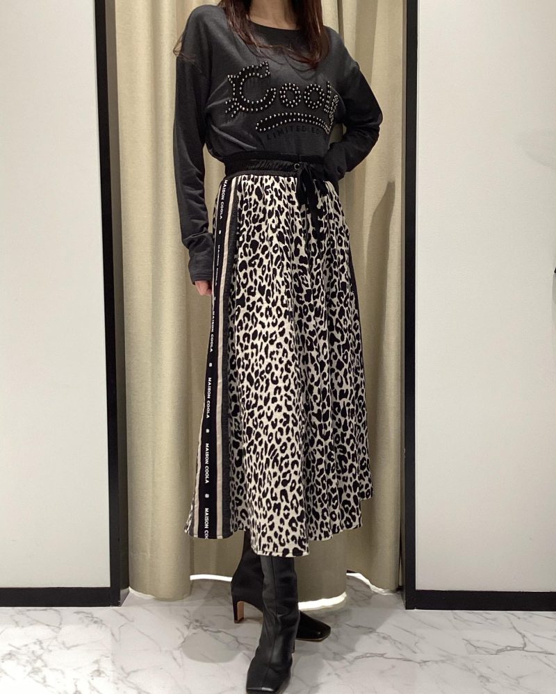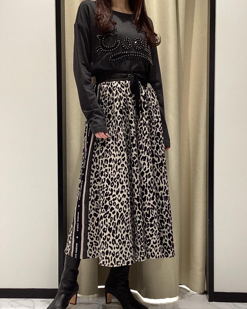 大人可愛いシルエットでレオパード柄が印象的なスカート。