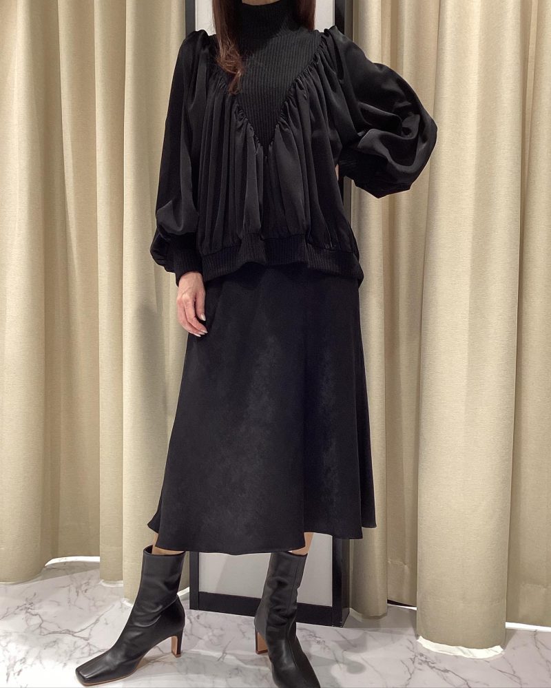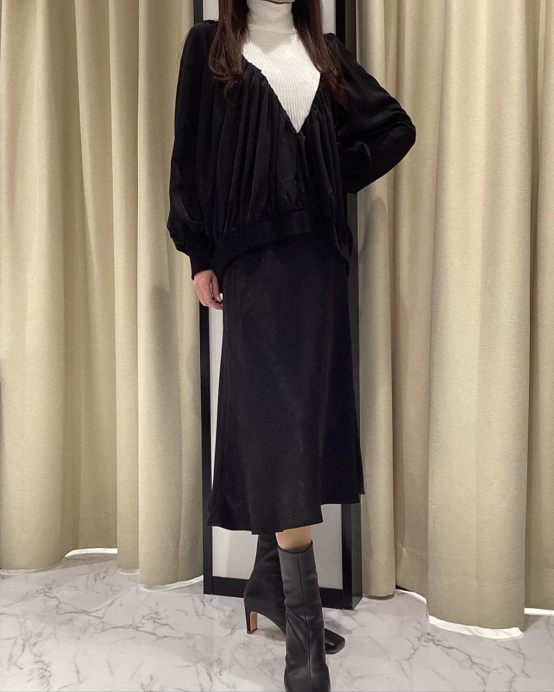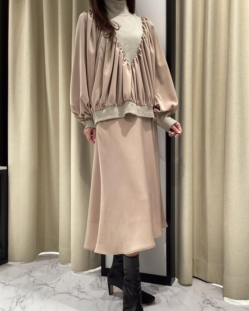 特殊な起毛とツヤ感のあるニット素材を使用したハイネックトップス