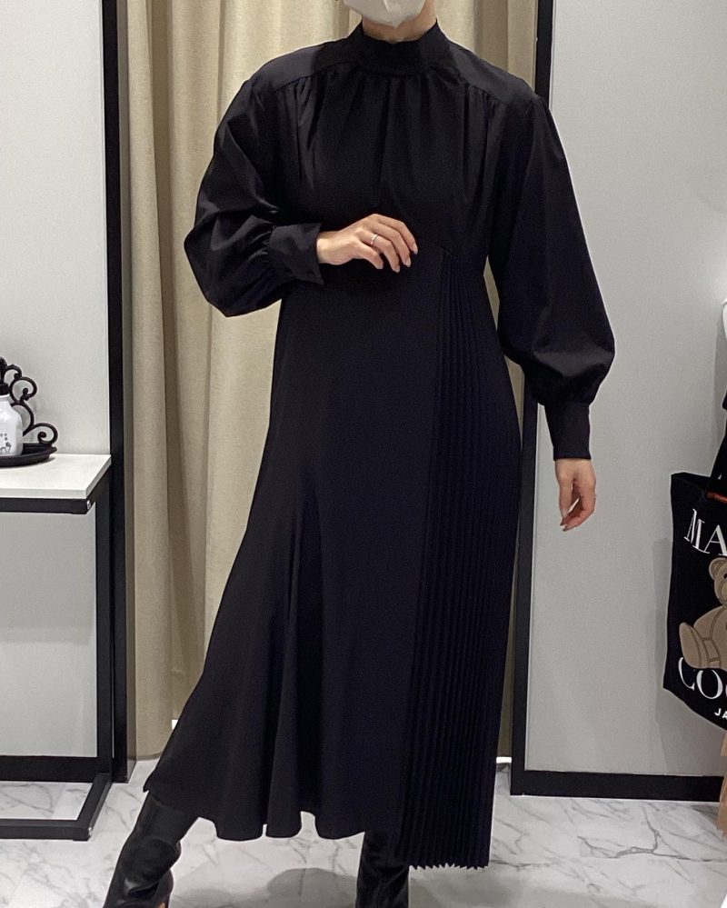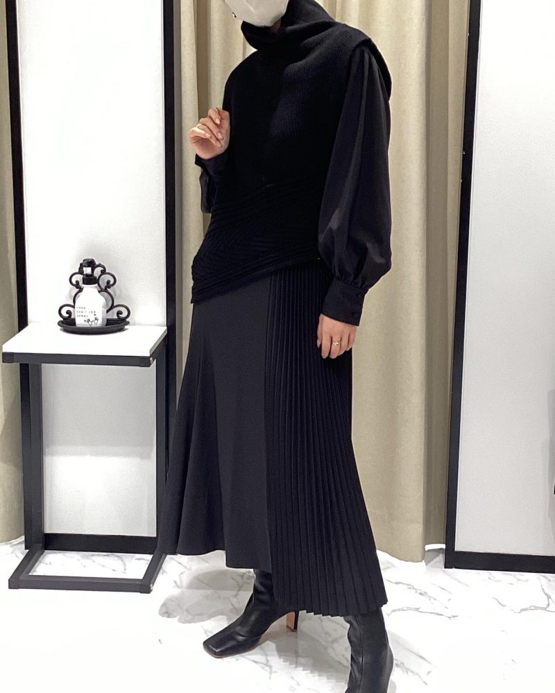 プリーツが女性らしくすっきりと見え、スタイルアップ効果抜群です◎