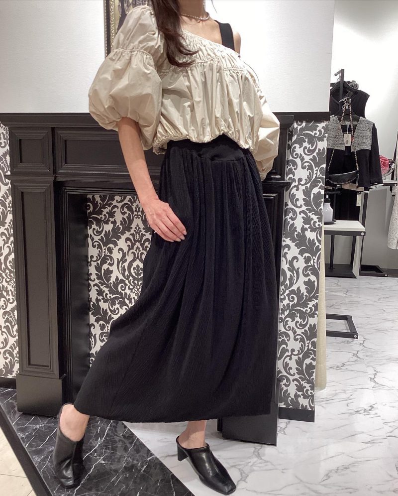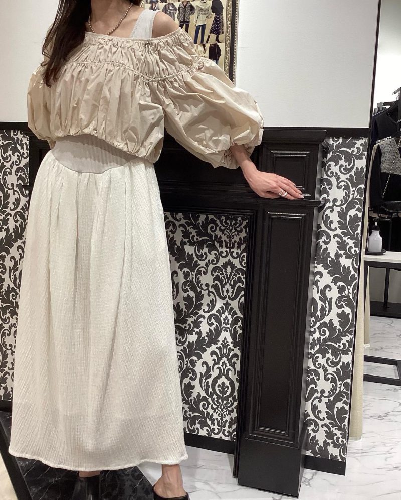 ワンピースの気心地もよく、オフホワイトのスカート部分は裏付きも嬉しいポイント◎