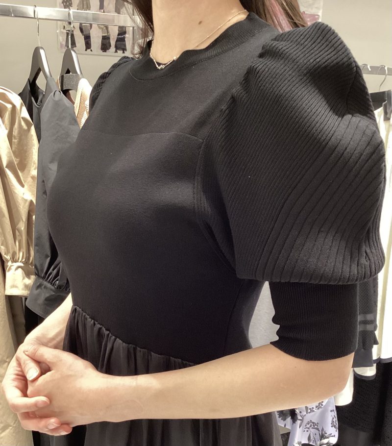 ウエスト部分から華やかに広がるスカートとバルーンスリーブで