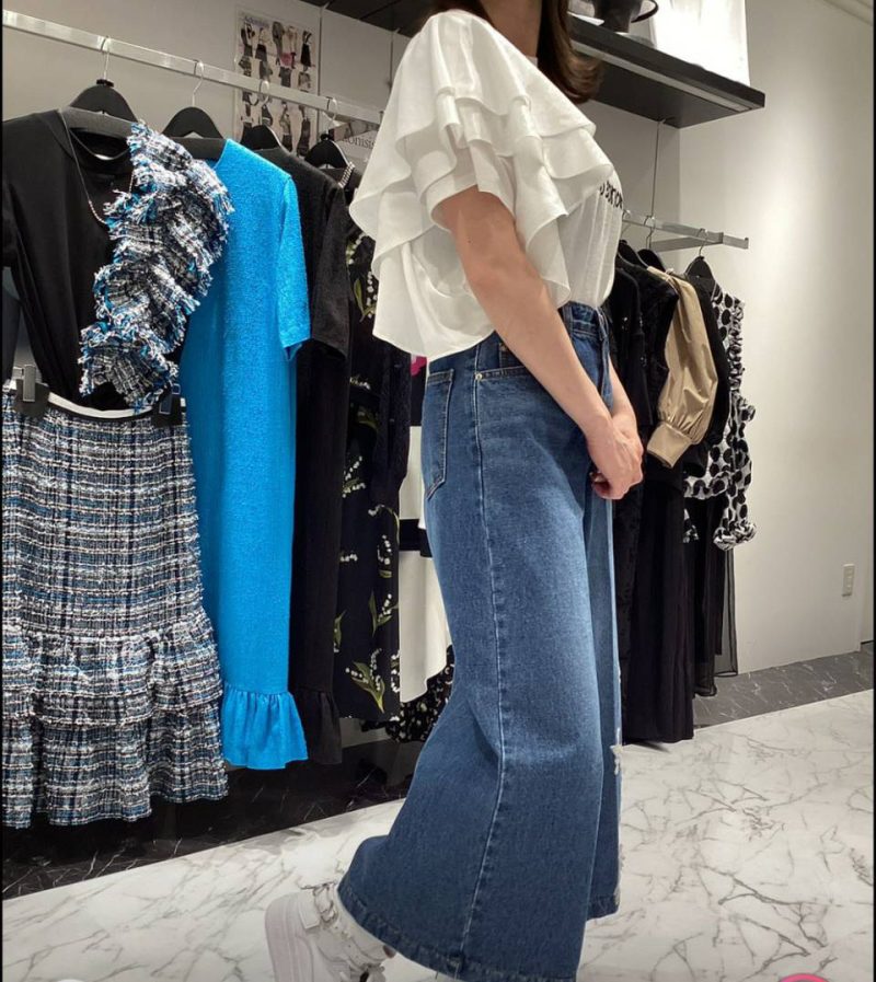 【ルフィルルージュ】COOLA Asymmetry Frill Sleeve TOPS×COOLAフラワーレースワイドデニム