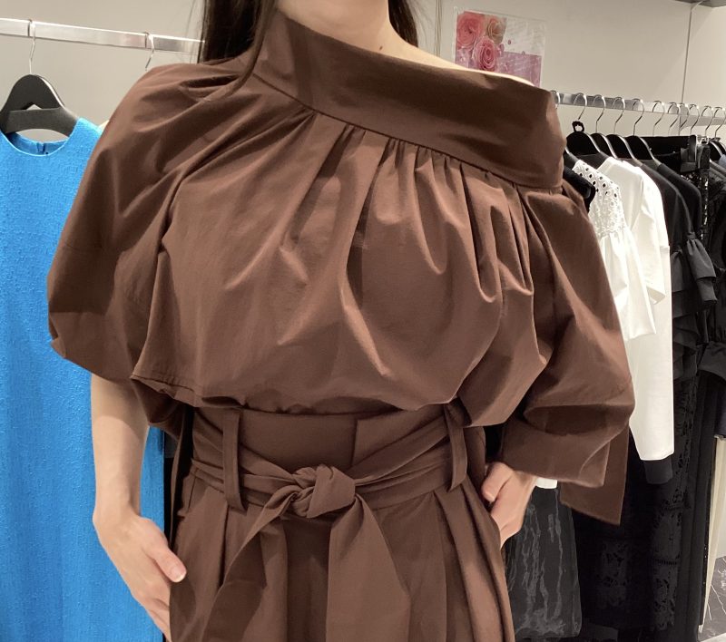 le fir rouge【ルフィルルージュ】OFF SHOULDER COCOON BL&WAIST RIBBON TUCK PT