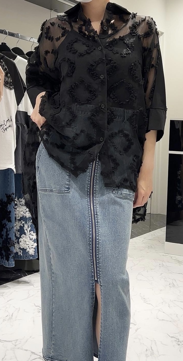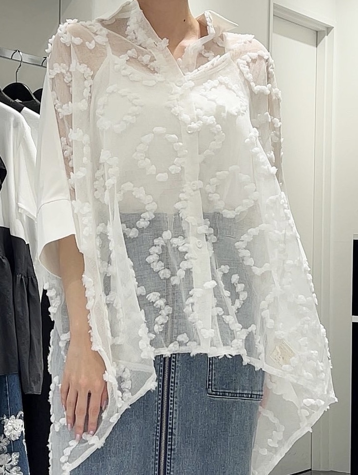 大胆な立体デコレーションが大人可愛いシアーシャツです。