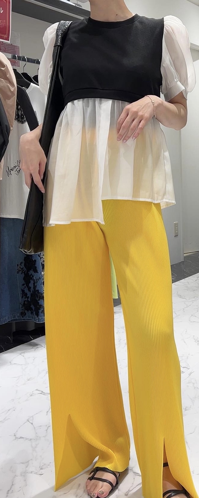 動くたびに綺麗なシルエットのヘムラインと、程よく甘めなパフスリーブで女性らしい印象に✨