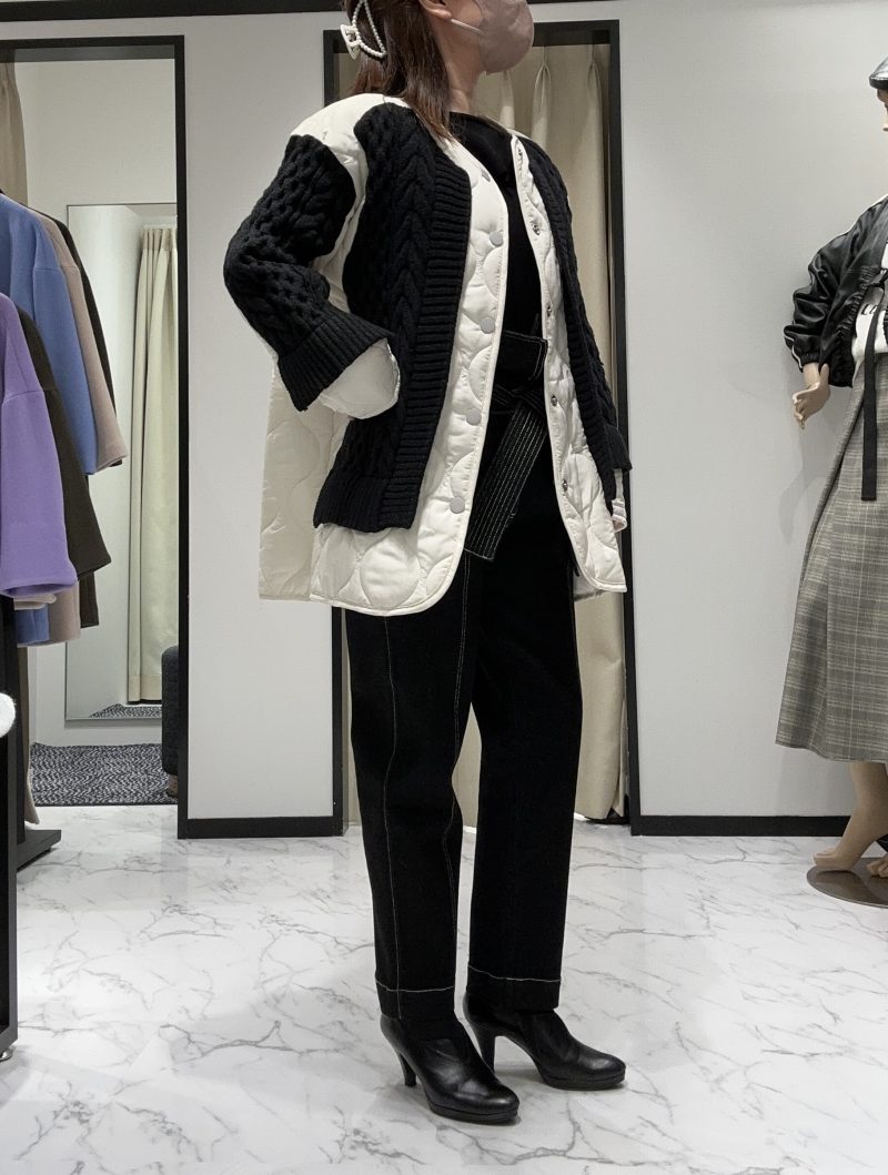 ニットとキルトのダブル使いで可愛さとカジュアルさを兼ね備えたジャケットです♪