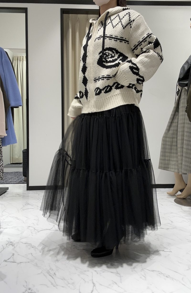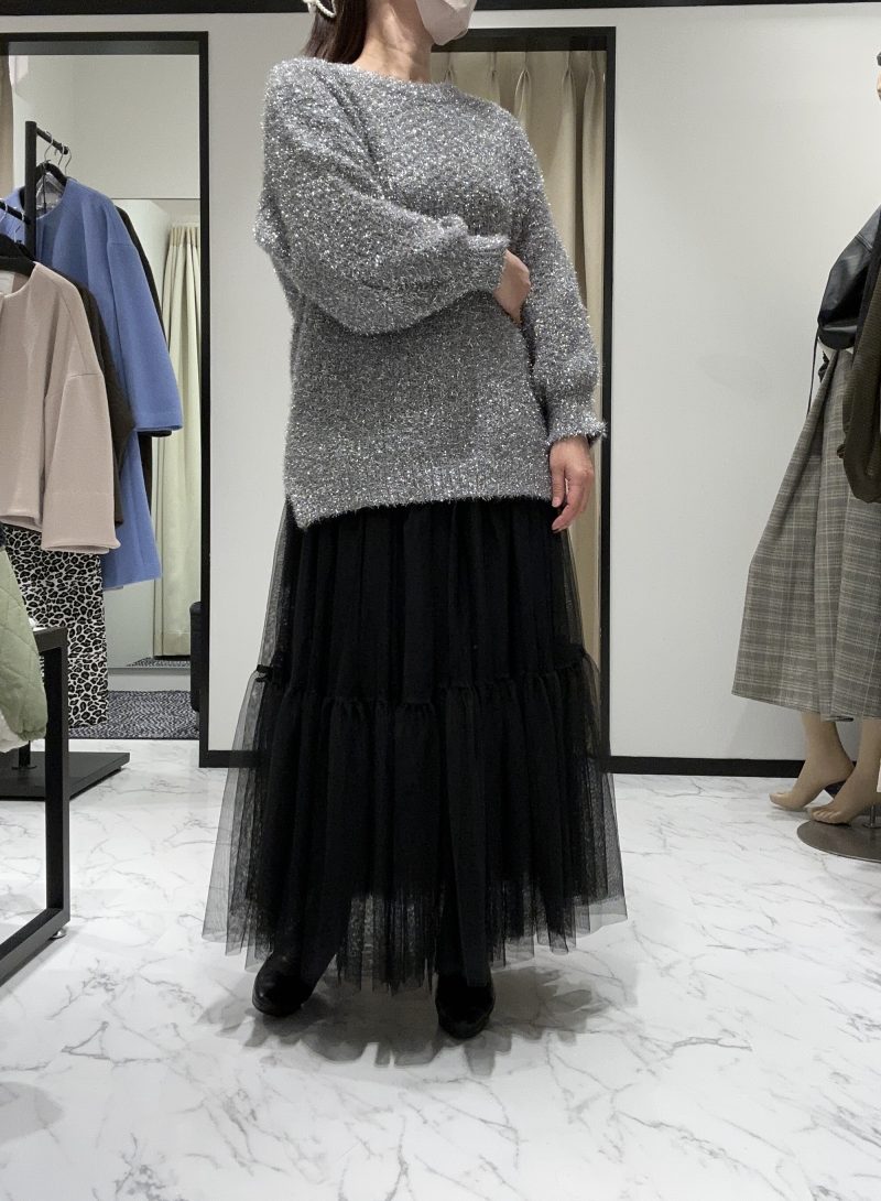 2種類のニットトップスをボリュームスカートに合わせました♪