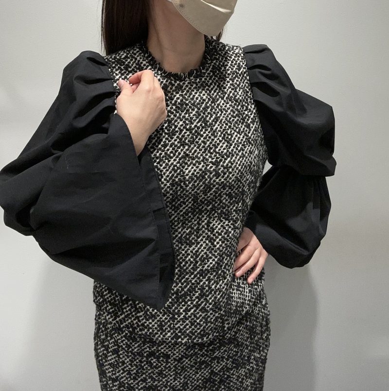 お袖にボリュームがありとても可愛いトップスに、同じツイードデザインのスカートでセットアップコーディネート!