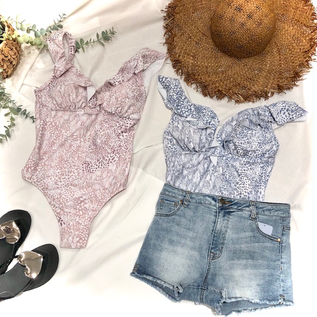 アニマル柄ショルダーフレアワンピース水着(206020)