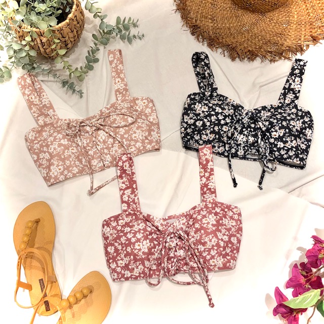 レトロな小花柄×ダスティカラーが海外の女の子っぽいバンドゥビキニです♡