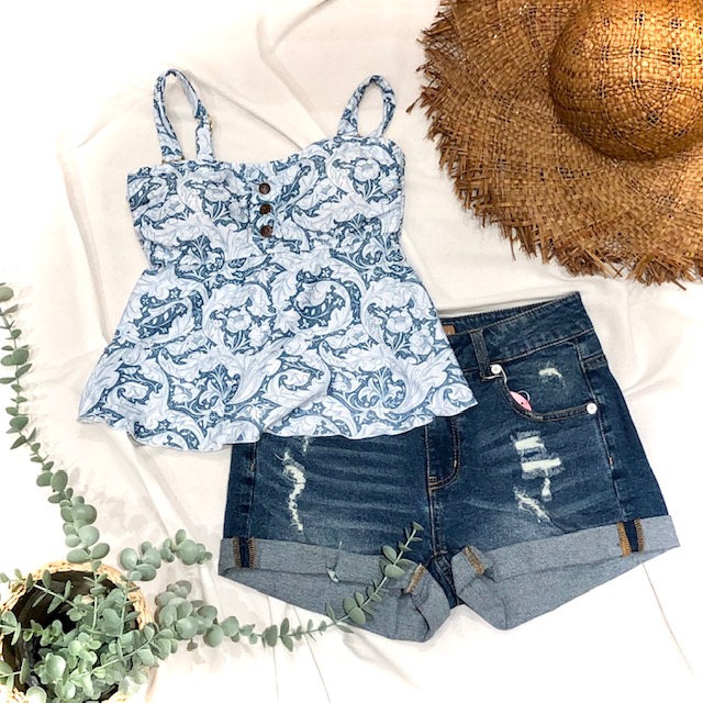 デニムショートパンツと合わせてお洋服っぽコーデがおすすめです★