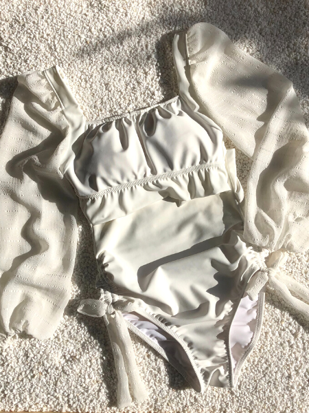 ワンピースのように着用でき袖付きだけど長袖で大人っぽく映える水着です。
