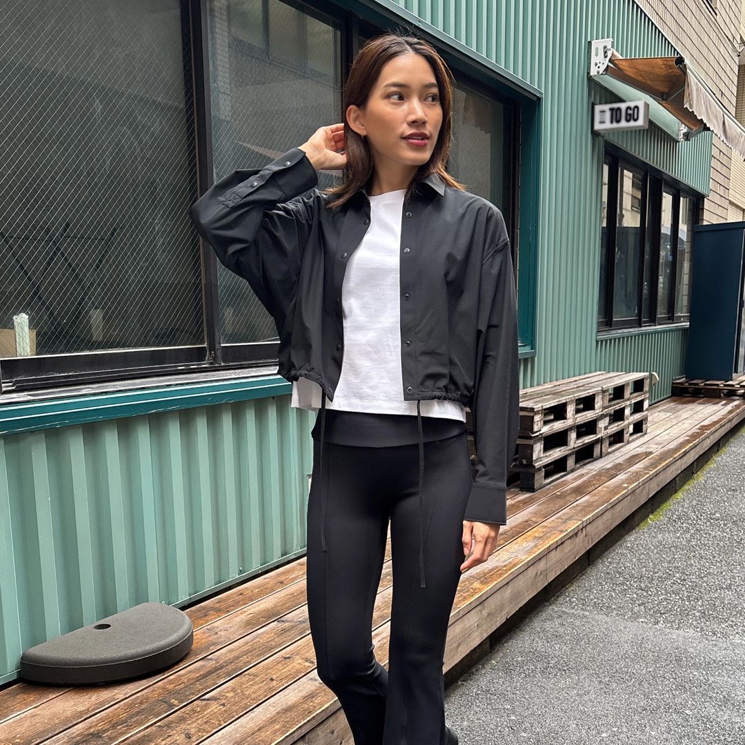 ボタンを開けてサラッと羽織ってもバランスの取りやすい丈感。
