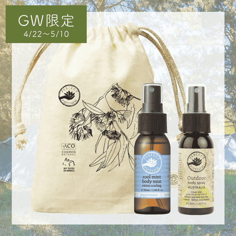 今日はパーフェクトポーションの夏の人気アイテム、アウトドアボディスプレーの期間限定セットをご紹介いたします。