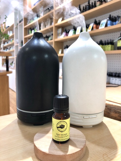 ◇スパエスケープエッセンシャルオイルブレンド10ml + セラミックディフューザー(白or黒)